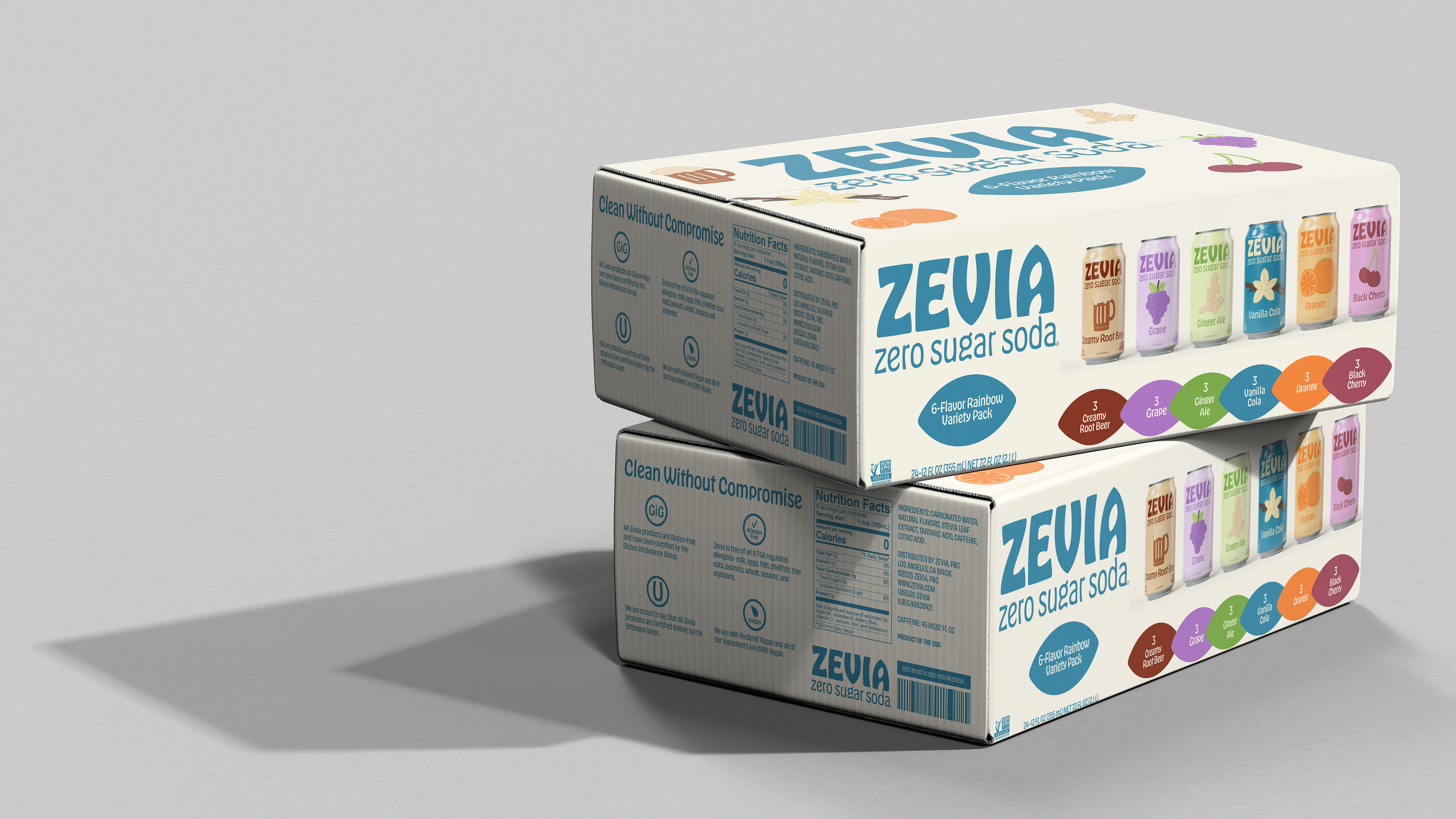 Zevia is a zero-sugar soda brand positioned as a healthier alternative to traditional soft drinks. For this project, I reimagined the brand with a clearly defined target audience: health-conscious consumers, including individuals with food sensitivities, as well as shoppers drawn to natural and specialty retailers such as Whole Foods. The visual direction incorporates a subtly feminine aesthetic while remaining intentionally inclusive, ensuring broad appeal without being limited to a single demographic.